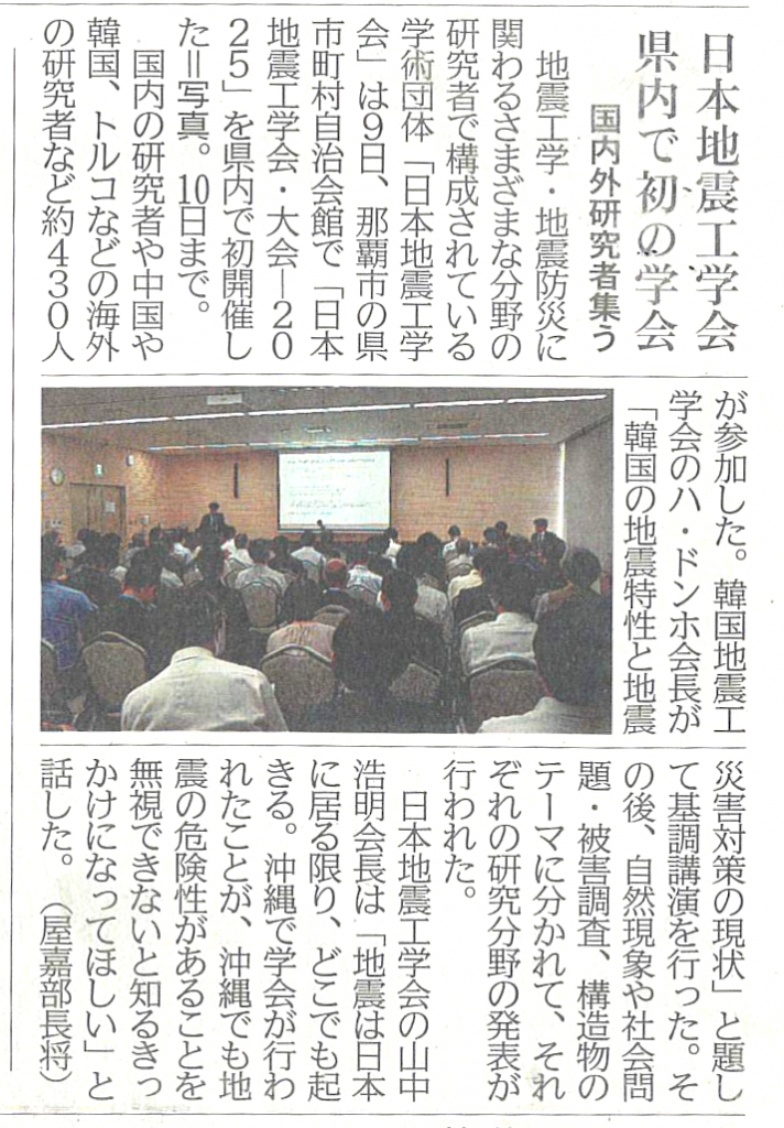 日本地震工学会は、2025年12月9日から10日の会期にて年次大会を沖縄・市町村自治会館において開催いたしました。